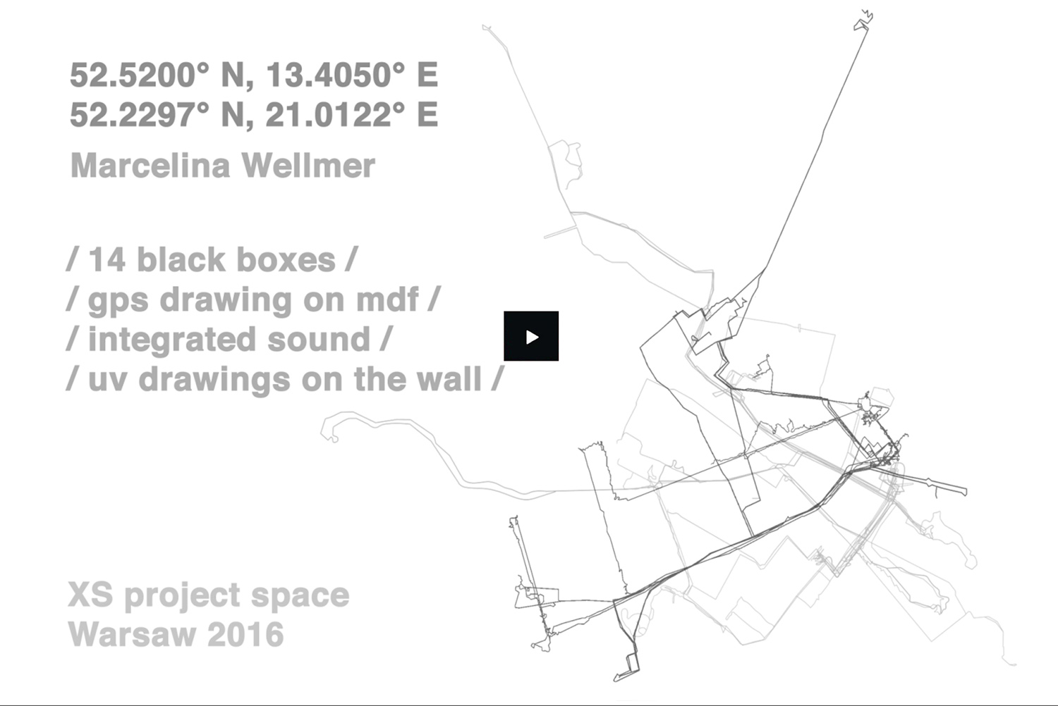 In the interactive visual and sound installation 52.2297° N, 21.0122° E // 52.5200° N, 13.4050° E, the body in urban space explores and analyzes the form and soundscape of two capitals – Berlin and Warsaw.