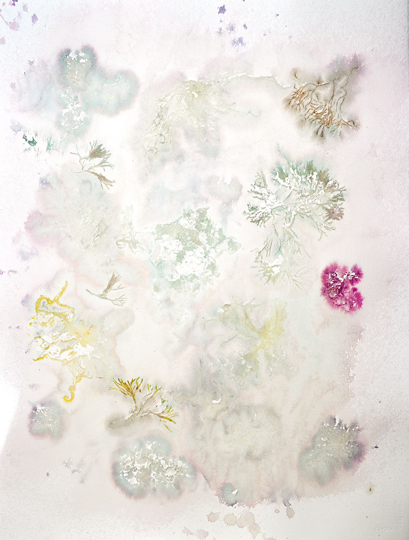 “Algal Traces” , 57 × 75 cm (each), imprints and pigments from marine plants on watercolor paper